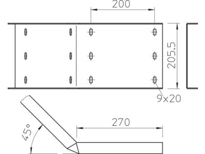 Úhlová spojka 45°, vodorovná, pro kabelové žebříky pro velká rozpětí s výškou bočnice 200 mm.