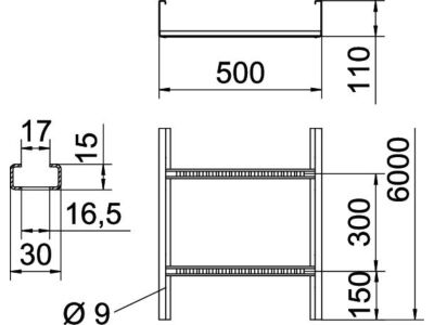 Kabelový žebřík pro velká rozpětí s děrovanou bočnicí o výšce 110 mm. Upevnění kabelů a vedení pomocí třmenové příchytky typu 2056.