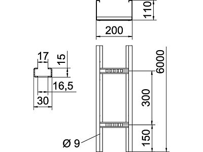 Kabelový žebřík pro velká rozpětí s děrovanou bočnicí o výšce 110 mm. Upevnění kabelů a vedení pomocí třmenové příchytky typu 2056.
