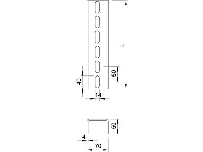 Profil U ve fixních délkách. Rozměry 70 x 50 mm.