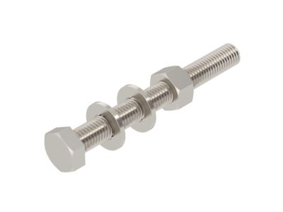 Šroub se šestihrannou hlavou pro univerzální upevnění konstrukčních prvků. Včetně šestihranné matice a 2 podložek.