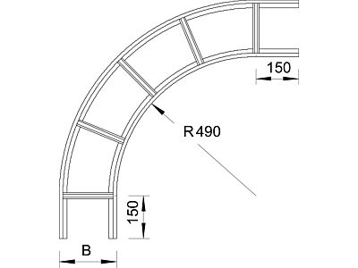 Oblouk 90°, horizontální, pro kabelové žebříky s příčkou VS a výškou bočnice 60 mm.