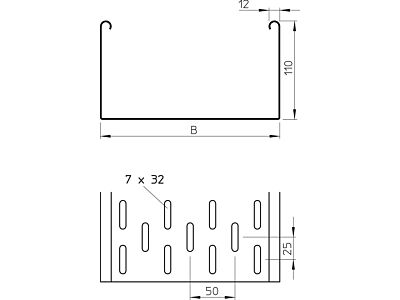 SKS 110 = Systém těžkých kabelových žlabů s výškou bočnice 110 mm..