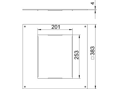 Montážní víko pro podlahové protahovací a odbočné krabice typu UZD350-3/4 k vestavbě jedné vestavné jednotky jmenovité velikosti 6. Montážní otvor 3 mm prohloubený k dodatečnému zaslepení plným víkem.