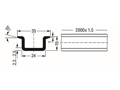 Měděná nosná lišta; 35 × 15 mm; Tloušťka 2,3 mm; Délka 2 m; Neděrovaná; Dle normy EN 60715; Měděná