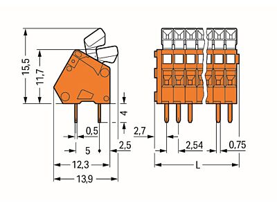 Svorka na desky plošných spojů; Tlačítko; 0,5 mm²; Rozteč 2,54 mm; 8pól.; CAGE CLAMP®; Oranžová