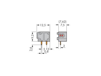 WAGO Svorka 235-722 2vodičová s možností řadového připojení na desky plošných spojů 0,75 mm² Rozteč 7,5/7,62 mm, šedá