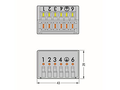 Konektor s pájecími piny; Přímý potisk; 6pól.; Šedá