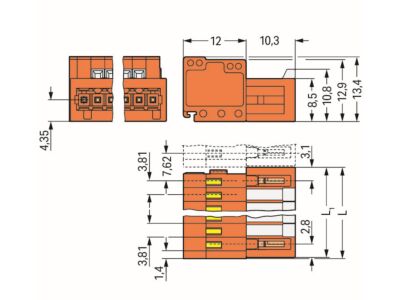 WAGO Konektor 734-338 1vodičový s pájecími piny CAGE CLAMP® 1,5 mm², oranžová