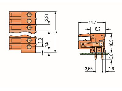 Pružinová svorkovnice THT; Úhlové provedení; Rozteč 3,81 mm; 20pól.; 100% ochrana proti chybnému zapojení; Pájecí kontakt 0,9 × 0,9 mm; Oranžová