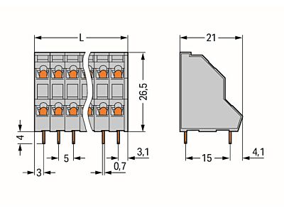 Dvoupatrová svorka na desky pl. spojů; 2,5 mm²; Rozteč 5 mm; 16pól.; CAGE CLAMP®; Šedá
