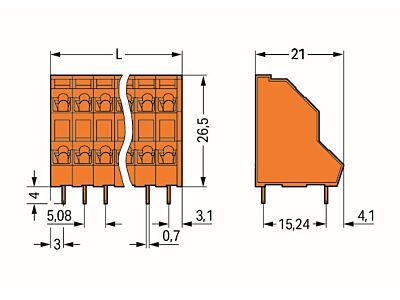 WAGO Svorka 736-306 dvoupatrová na desky plošných spojů 2,5 mm² rozteč 5,08 mm, oranžová