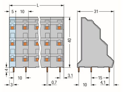 Třípatrová svorka na desky pl. spojů; 2,5 mm²; Rozteč 10 mm; 9pól.; CAGE CLAMP®; Šedá