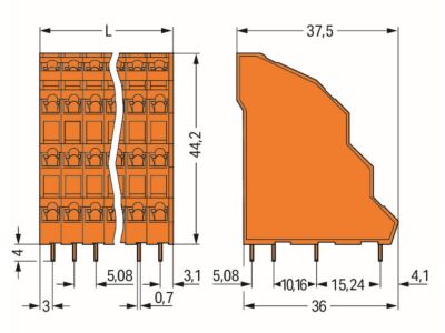 Čtyřpatrová svorka na desky pl. spojů; 2,5 mm²; Rozteč 5,08 mm; 64pól.; CAGE CLAMP®; Oranžová