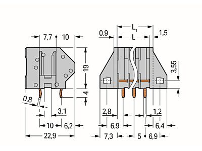 Svorka na desky plošných spojů; 4 mm²; Rozteč 5 mm; 10pól.; CAGE CLAMP®; Možnost můstkového propojení; Šedá