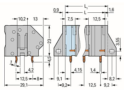 Svorka na desky plošných spojů; 6 mm²; Rozteč 12,5 mm; 4pól.; CAGE CLAMP®; Možnost můstkového propojení; Šedá