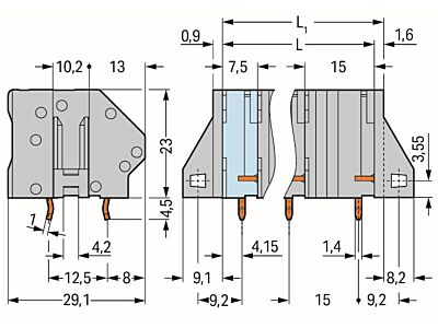 Svorka na desky plošných spojů; 6 mm²; Rozteč 15 mm; 4pól.; CAGE CLAMP®; Možnost můstkového propojení; Šedá