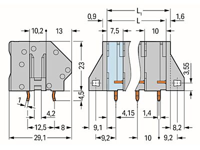 Svorka na desky plošných spojů; 6 mm²; Rozteč 10 mm; 3pól.; CAGE CLAMP®; Možnost můstkového propojení; Šedá