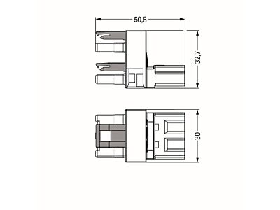h-rozdělovač; 3pól.; Kód. A; 1 vstup; 2 výstupy; Vývody na jedné straně; 2 blokovací západky; Bílá