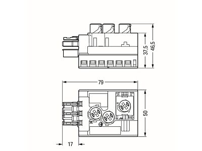 Odbočovací modul; Pro plochý kabel; 5 × 2,5 mm² + 2 × 1,5 mm²; 3pól.; Kód. P; S přípojkou pro kabel na straně výstupu; Červená
