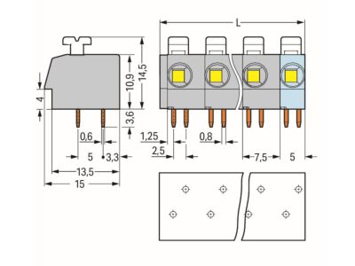 Svorka na desky plošných spojů; Tlačítko; 2,5 mm²; Rozteč 7,5 mm; 3pól.; Push-in CAGE CLAMP®; Šedá