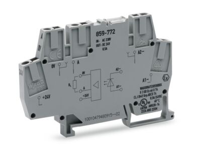 Modul s optočlenem; Jmenovité vstupní napětí AC 230 V; Rozsah výstupního napětí DC 20–30 V; Mezní trvalý proud 0,5 A; 3vodičové připojení / spínání k plusu; Indikace stavu červená; Konstrukční šířka 6 mm; Šedá