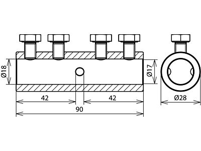 Trubičková spojka s vyražením úderníkem k propojení nebo prodloužení jímacích tyčí (prům. 16 mm, zmenšení přepravní délky), se čtyřmi šrouby M8 (zajištění proti samovolnému povolení).