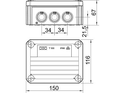 OBO BETTERMANN Krabice T 100 odbočná, hranatá, 150x116x67mm, PP, IP66 šedá