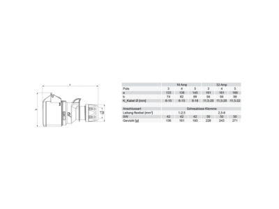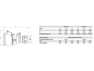PCE Spojka 32A/220V 3-pól. IP44