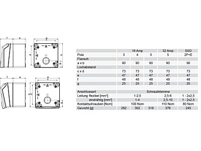 PCE Zásuvka 16A/400V 5-pólová nástěnná IP44