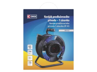 EMOS Přívod prodlužovací 50m zásuvka-spojka 1x230V/16A s bubnem IP43 černá (H05RRF3G 3x1,5)
