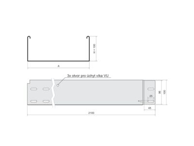 KOPOS Žlab NKZIN 100X250X0.80 F, MARS, žárově zinkováno, délka 2m