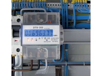 Třífázový elektroměr s LCD displejem pro střídavé napětí 3x230 V / 400 V, 50Hz, slouží k měření činné elektrické energie v přímém zapojení do obvodu. Je určen na podružné měření spotřeby samostatných spotřebičů nebo spotřebičů ve skupinách. Jedná se o přesný elektroměr, který měří již od minimálních hodnot protékajícího proudu (0,25 A) až po 80 A, velký podsvícený LCD displej zobrazuje hodnoty na číselníku od 000000,01 až 999999,99 [kWh] a to bez přivedeného napájení po dobu až 10 let (záleží na okolním prostředí), zobrazené naměřené hodnoty nelze vymazat. Indikační LED blikají při odběru konkrétní fáze. Elektroměr má impulzní výstup na svorkách (20) S0+ a (21) S0-. To umožňuje připojení externího zařízení, které počítá impulzy (S0 dle normy DIN 43864) generované elektroměrem. Ke správné funkci elektroměru se nevyžaduje zapojení tohoto doplňkového zařízení. Montuje se na nosnou lištu 35 mm (DIN lištu), vestavná šířka je 76 mm (4,5 mod.). Šroubové svorky pro pohodlné připojení vodičů až do průřezu 35 mm2, svorky pro nulový vodič „N“ jsou vzájemně (galvanicky) propojené a není nutné rozdělovat „N“ vodič. Utahovací moment šroubů : svorka č. 1-8 = 2,0 - 3,0 Nm, svorka č. 20-21 = 1,0 - 1,2 Nm. Vlastní spotřeba je menší než 2 W.