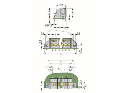 Svorka na desky plošných spojů; 2,5 mm²; Rozteč 5 mm; 6pól.; CAGE CLAMP®; Upevňovací příruba; Šedá