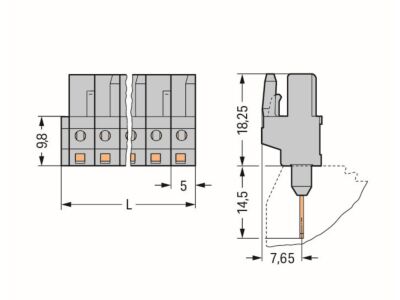 Konektor (zásuvka) pro řadové svorky; Kolíky 0,6 × 1 mm; Rovné provedení; Rozteč 5 mm; 9pól.; Šedá