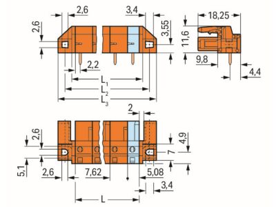 - Rozteč kontaktů 7.62 mm