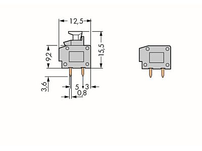 WAGO Svorka 235-551/332-000 2vodičová s možností řadového připojení na desky plošných spojů Tlačítko 0,75 mm², šedá