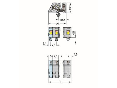 1vodičový konektor (zásuvka), úhlový; CAGE CLAMP®; 2,5 mm²; Rozteč 7,5 mm; 13pól.; Západky; 2,50 mm²; Šedá