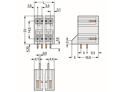 Dvoupatrový konektor s pájecími piny THT; Pájecí kontakt 1,0 × 1,0 mm; Úhlové provedení; 100% ochrana proti chybnému zapojení; Rozteč 3,5 mm; 16pól.; Světle šedá