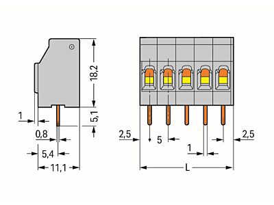 Svorka na desky plošných spojů; 2,5 mm²; Rozteč 5 mm; 5pól.; CAGE CLAMP®; Světle šedá
