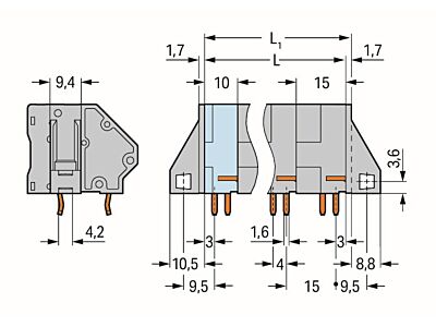 WAGO Svorka 745-602/006-000 na desky plošných spojů 16 mm² Rozteč 15 mm, šedá