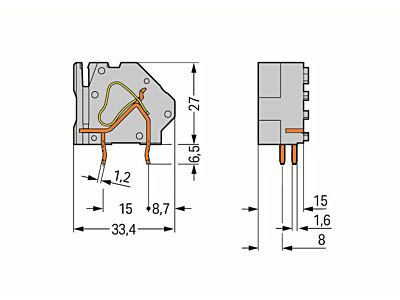 Svorka s možností řad. připojení na DPS; 16 mm²; Rozteč 15 mm; 1pól.; CAGE CLAMP®; Možnost můstkového propojení; Světle zelená