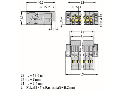 1vodičový konektor s pájecími piny; CAGE CLAMP®; 4 mm²; Rozteč 5 mm; 6pól.; Průchozí příruba; 4,00 mm²; Šedá