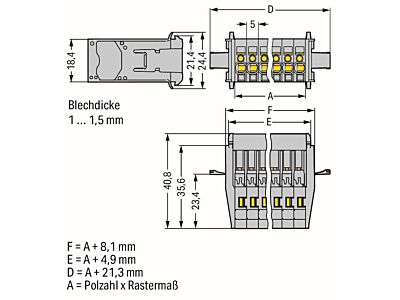 1vodičový konektor s pájecími piny; CAGE CLAMP®; 4 mm²; Rozteč 5 mm; 8pól.; Zajišťovací příruba; 4,00 mm²; Šedá