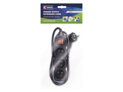EMOS Přívod prodlužovací 1,5m 3zásuvka 250V/10A s vypínačem IP20 černá