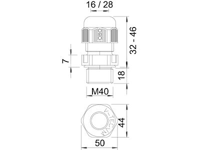 Kabelová vývodka s metrickým připojovacím závitem kloboučkového tvaru, pro odbočné krabice, pouzdra, rozvodné skříně v soukromé i průmyslové oblasti. S odlehčením tahu a integrovaným těsnicím břitem, zkoušena podle normy EN 62444. Stupeň krytí IP68. Lze použít od –20 °C do +65 °C.