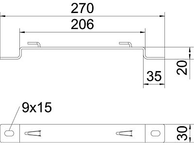 Třmen pro montáž mřížových žlabů na podlahu nebo na stěnu.