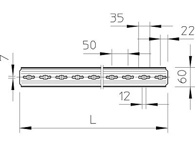 Profil TP děrovaný v dodávané délce 3000 mm.