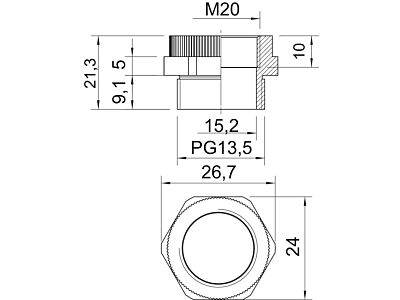 Adaptér z otvoru se závitem PG na otvor s metrickým závitem.