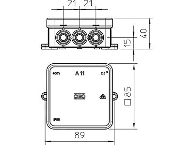 • Odbočná krabice s vylamovacími otvory pro vstup potřebných vedení a s víkem